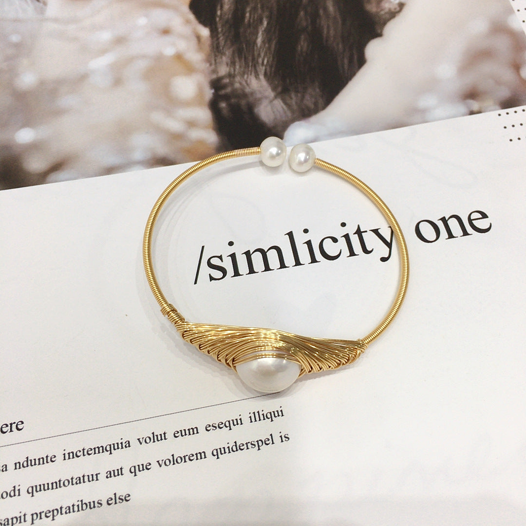 Designer-style Wrapped-wire Handmade Bracelet Featuring Sizable Natural Freshwater Pearls